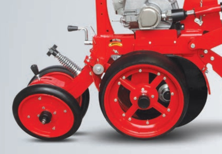 ґрунту на колеса. - Копіювальні колеса мають механізм балансування для забезпечення рівномірності глибини посіву навіть при потраплянні перешкод в зону посіву, а прикотуючі колеса мають механізм регулювання тиску для створення ідеального контакту насіння з ґрунтом та забезпечення рівномірності сходів.